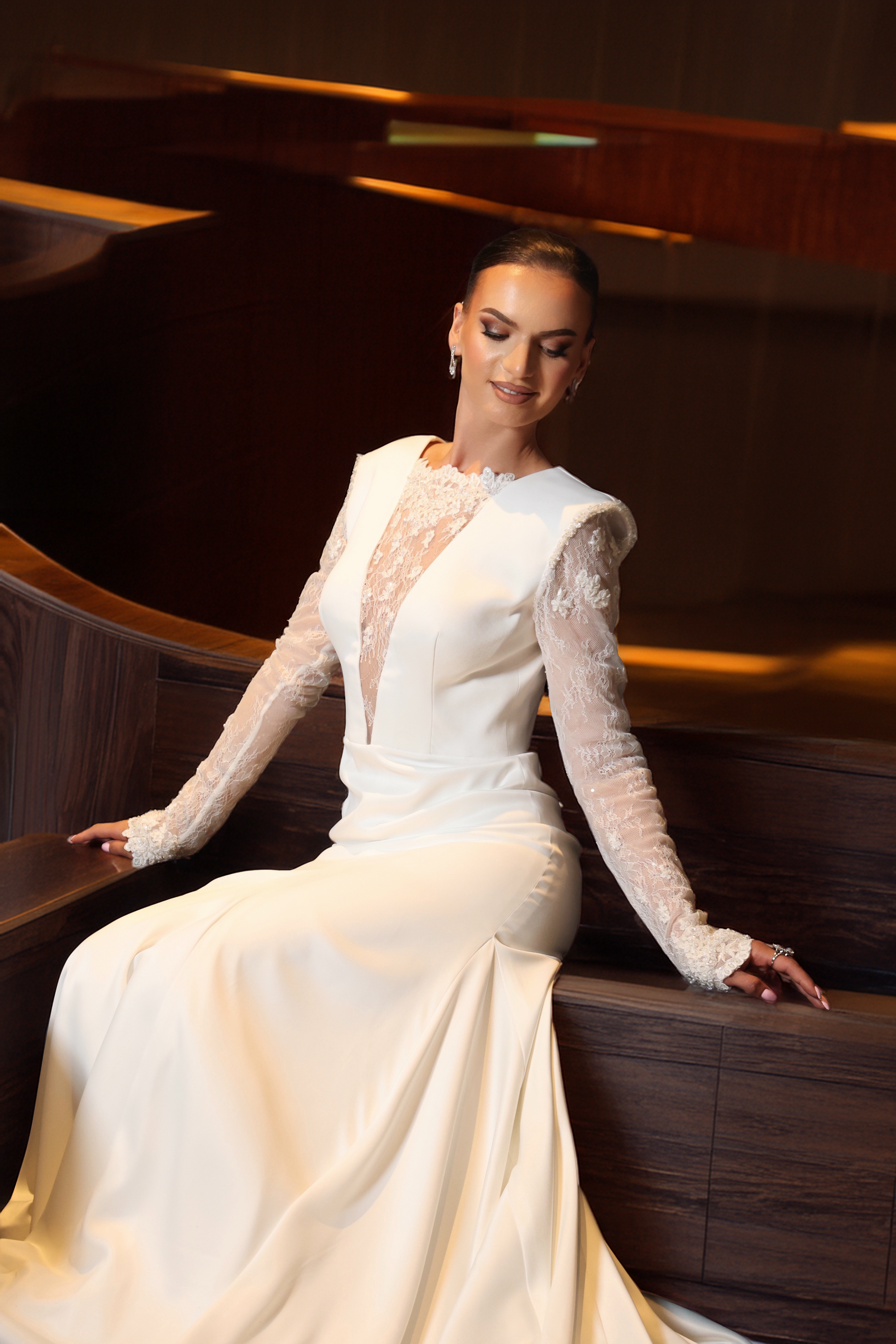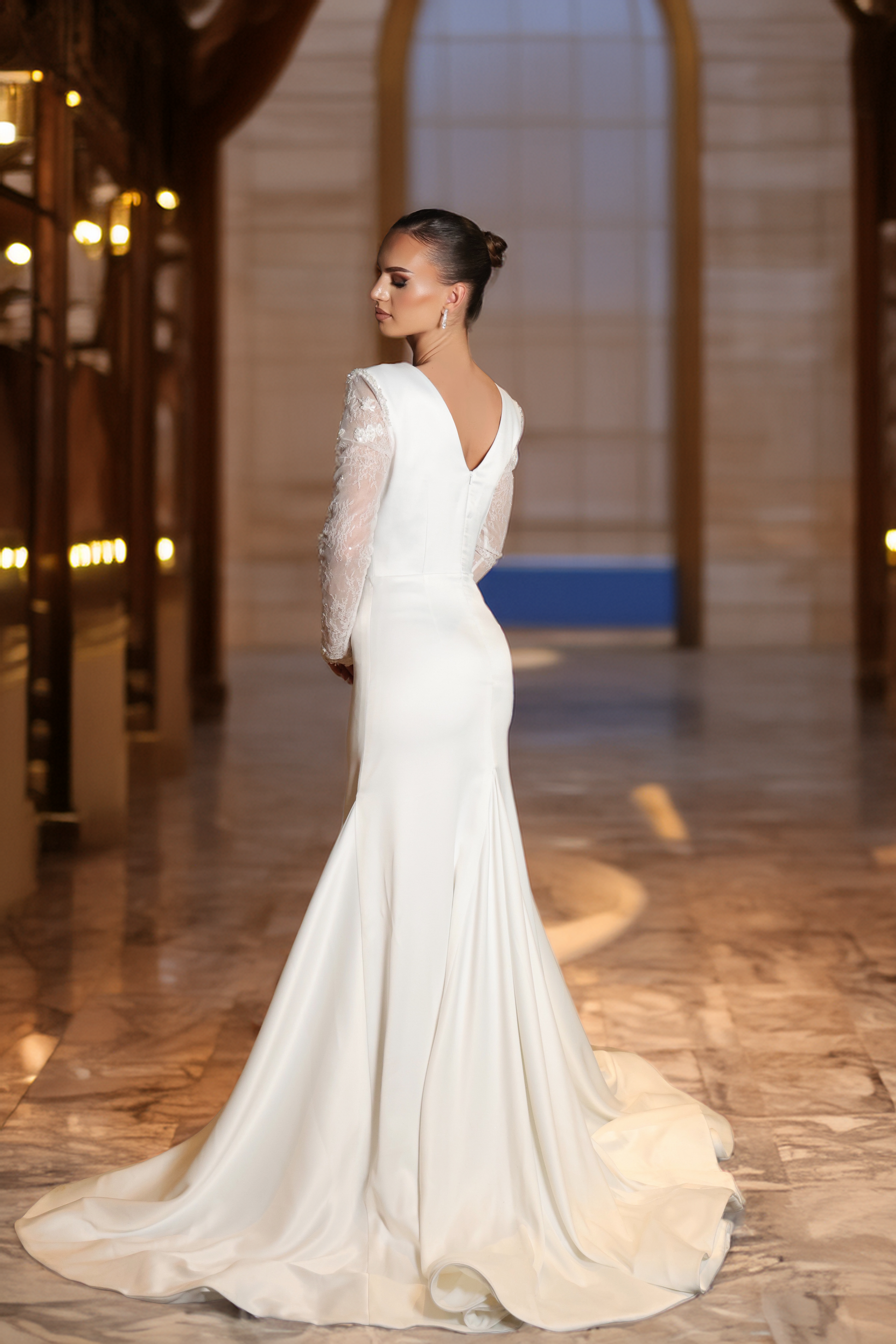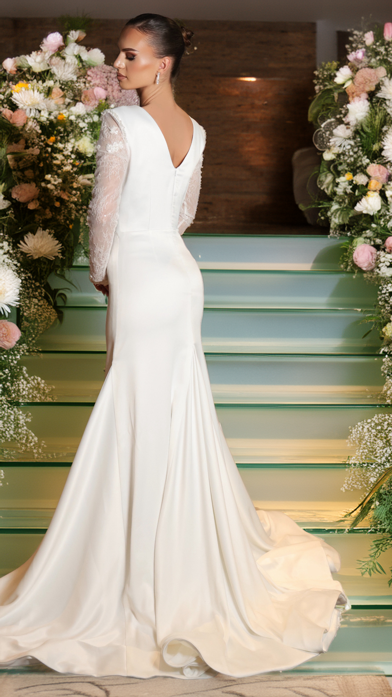Marmid Wedding Dress: A beautiful creation, made with love and care. The delicate lace and hand-sewn shimmering stones create a magical effect, while the elegant V-neckline adds a sophisticated and modern touch.
