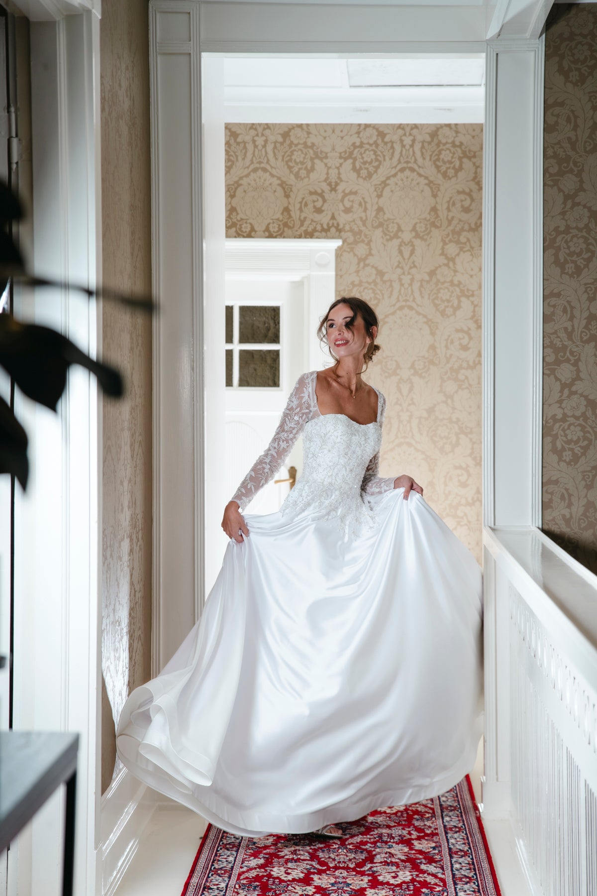 A period of 10-12 weeks is needed to complete the dress when ordering after your own measurements.